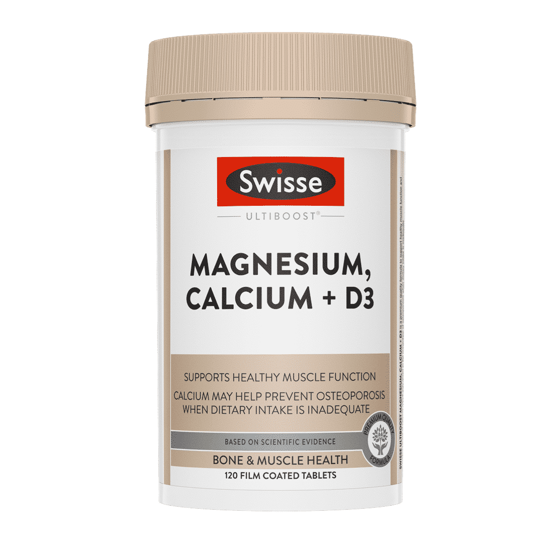 SWISSE ULTIBOOST鎂,鈣+ D3已根據科學證據配製,以方便的劑量提供三種有益的營養素。